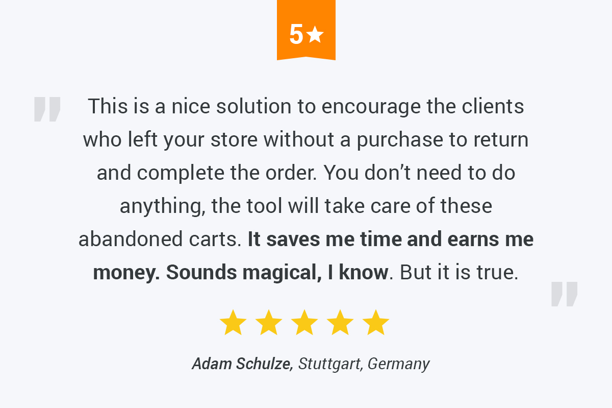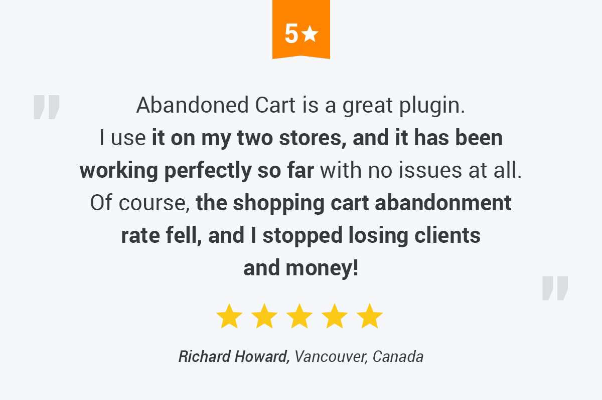 Decrease your shopping cart abandonment rate by sending automatic email reminders to your website visitors who added items to their cart but did not complete their purchase. Just plug the Abandoned Cart add-on and start recovering your orders effortlessly!
