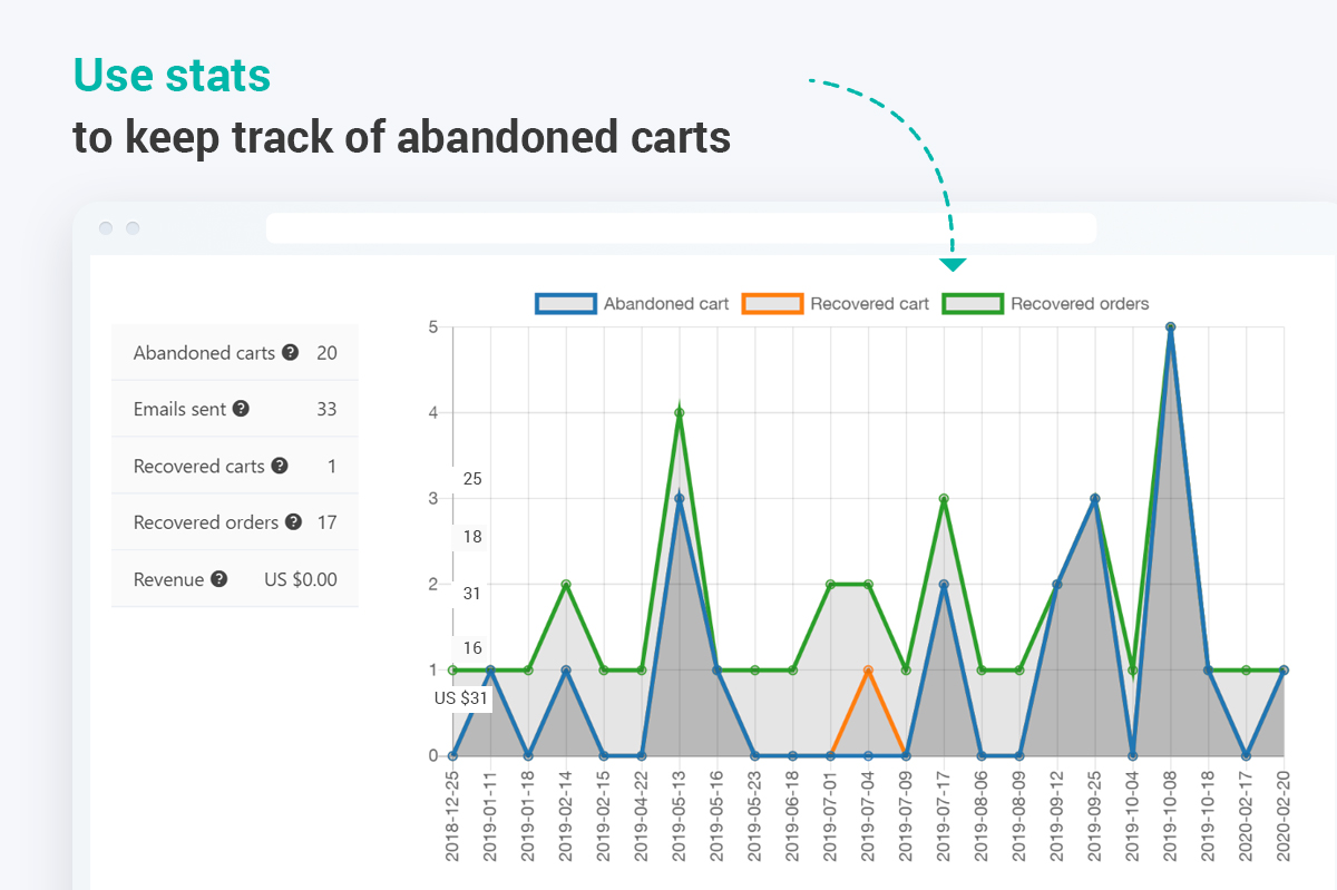 Also, we’ve added a stats feature for each abandoned cart email you send, providing you insight on which type of email or offer performed best so you can always be in know of what works (and what doesn’t).