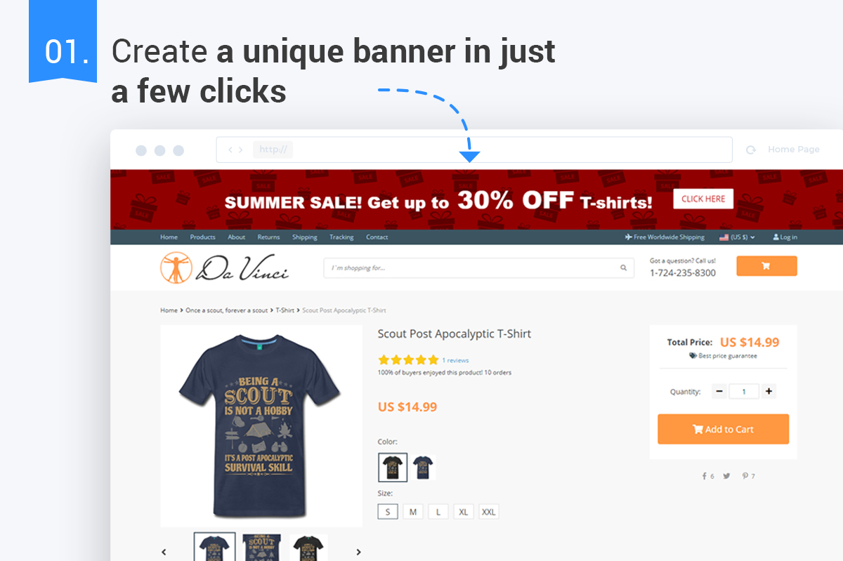 We’ve done the research. We’ve uncovered what works. And we’ve created a banner platform that mimics the highest-converting designs in ecommerce. Just plug and play and be on your way to creating attractive sales.