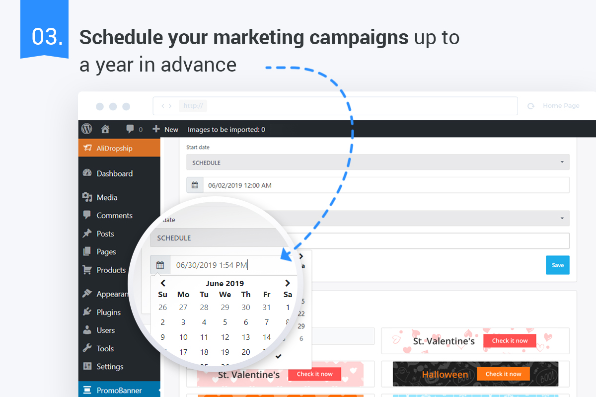 Another great benefit of Promo Banner is automation. Simply set your start and end dates and let the orders rolls in. You can even set promotional campaigns over a year in advance for convenient planning.