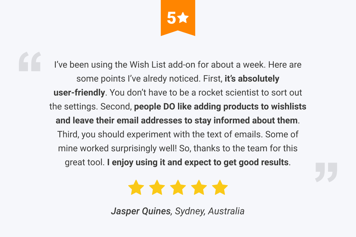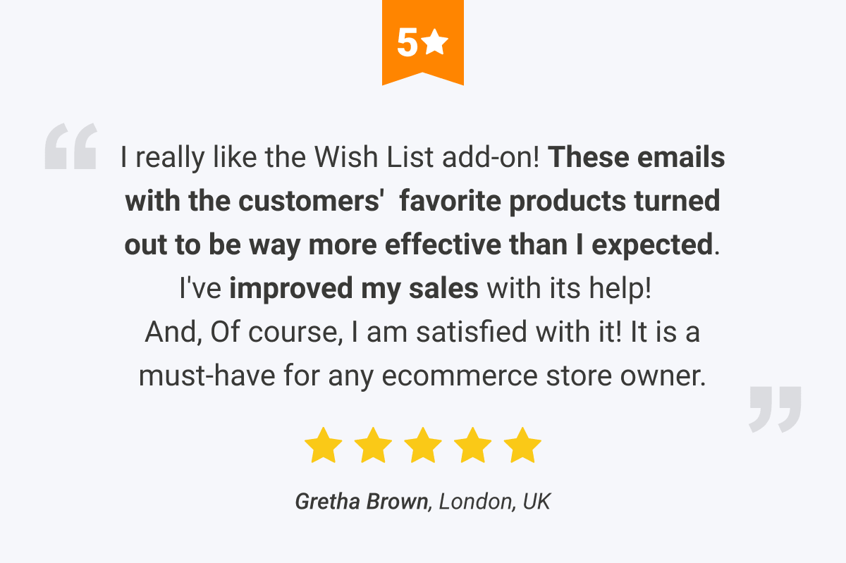 By allowing customers to bookmark their favorite products, you motivate them to come back to your store and even spend more money per order! With the Wish List add-on, you can add this option in just a couple of clicks.