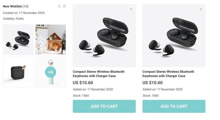 Just in a click, your buyers will be able to create their own wish lists with all your products they’d love to get. Plus, with the Wish List add-on, you can easily collect the email addresses of your shoppers to run targeted email marketing campaigns and keep reminding them about their favorite products.