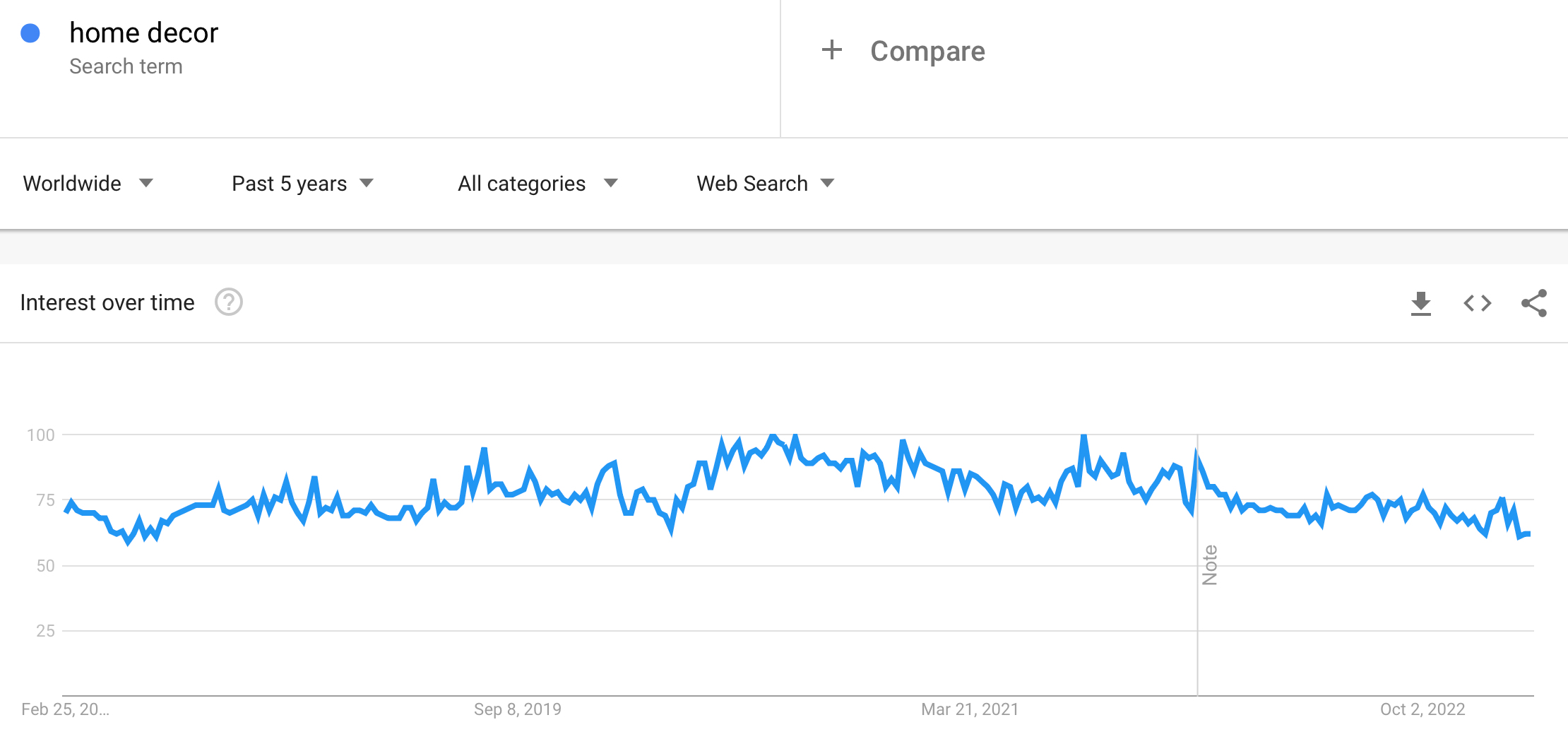 First of all, let’s see what Google Trends can tell us about home decor dropshipping.