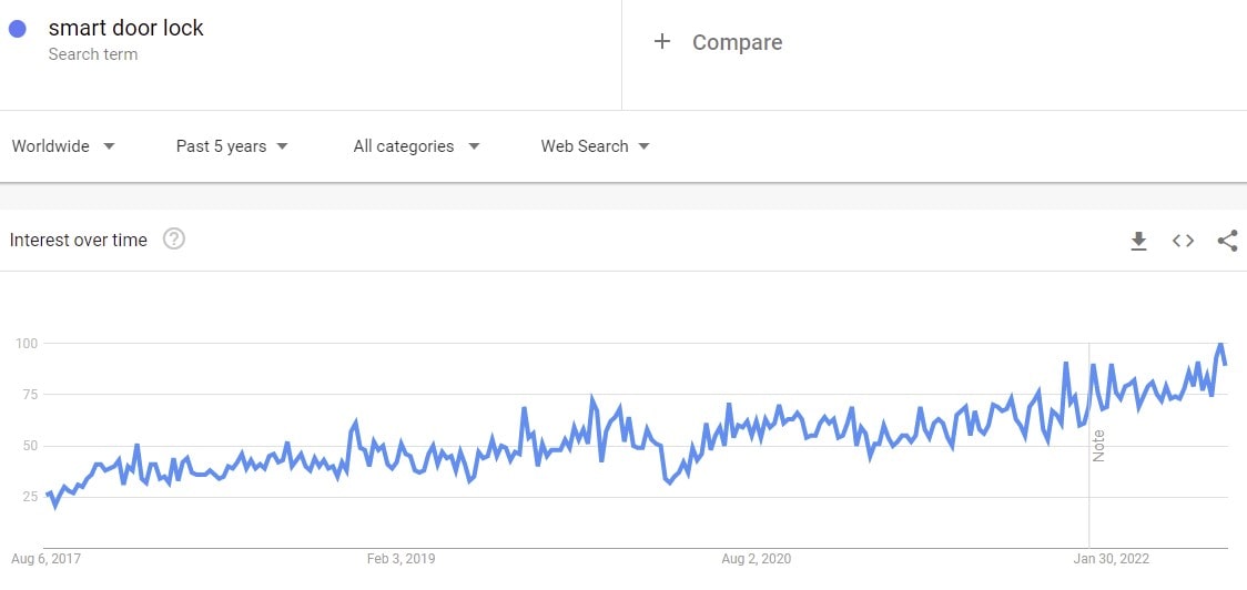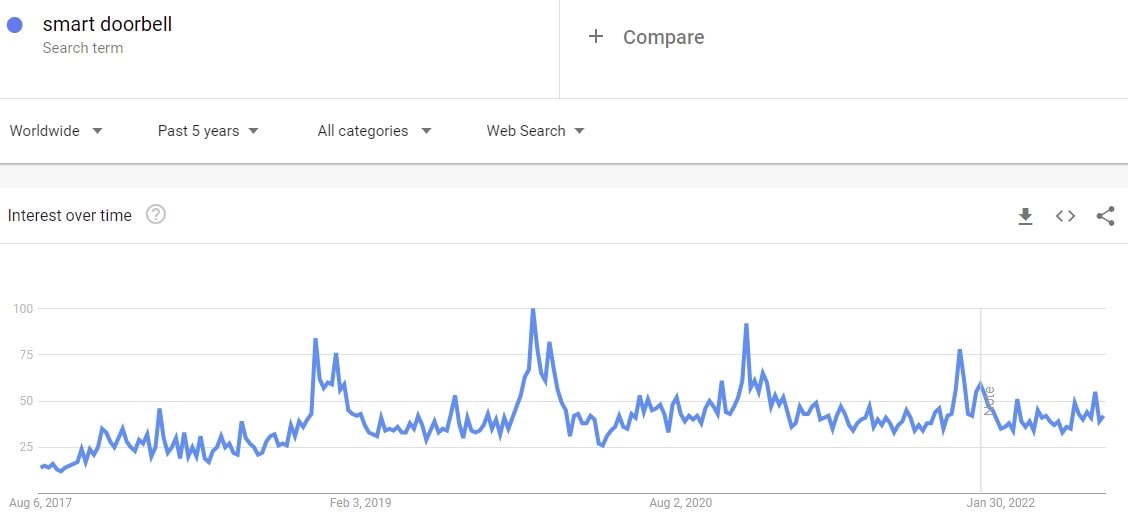 According to Google Trends, some 3-4 years ago the popularity of ‘smart motion sensor’ began to grow. And nowadays the interest to this kind of smart home devices is enough to think of adding this product to your product range.