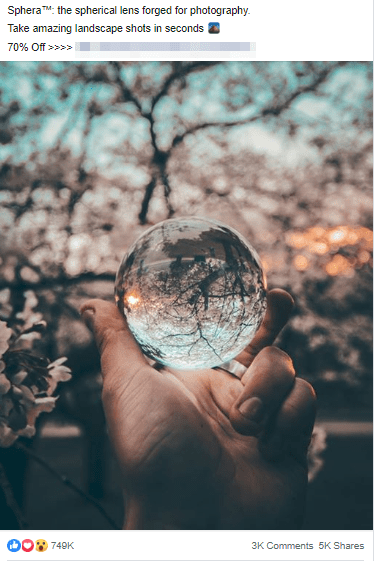 This advertisement has thousands of likes, comments and shares. The picture of this wine glass makes people focus on the product and helps them get a clear picture of how it’s going to embellish their homes.