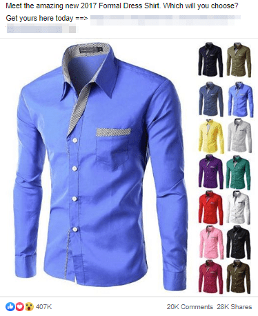 That’s why your Facebook ad should let customers see that they have various options to choose from. A good example of this is shown in the picture above. Those who don’t want to buy the pink hoodie can pick one of a different color from the alternatives on the right side of the picture.