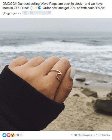 This harmony along with the 20% discount have earned this ad 503k likes, 1.7k comments and 2.1 shares. Not bad, right?