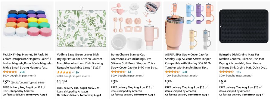 In the same vein as bedding, kitchen gear, including storage solutions and tools, is a hit on Amazon. The vast selection and competitive prices have made this category a popular choice for shoppers, making it an excellent niche if you’re looking to sell kitchen accessories.