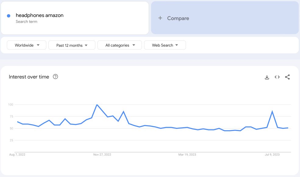 Google Trends data shows a steady, incremental increase in the search volume for headphones on Amazon over the past few years. If you’re considering electronic accessories, headphones could be a sound investment.