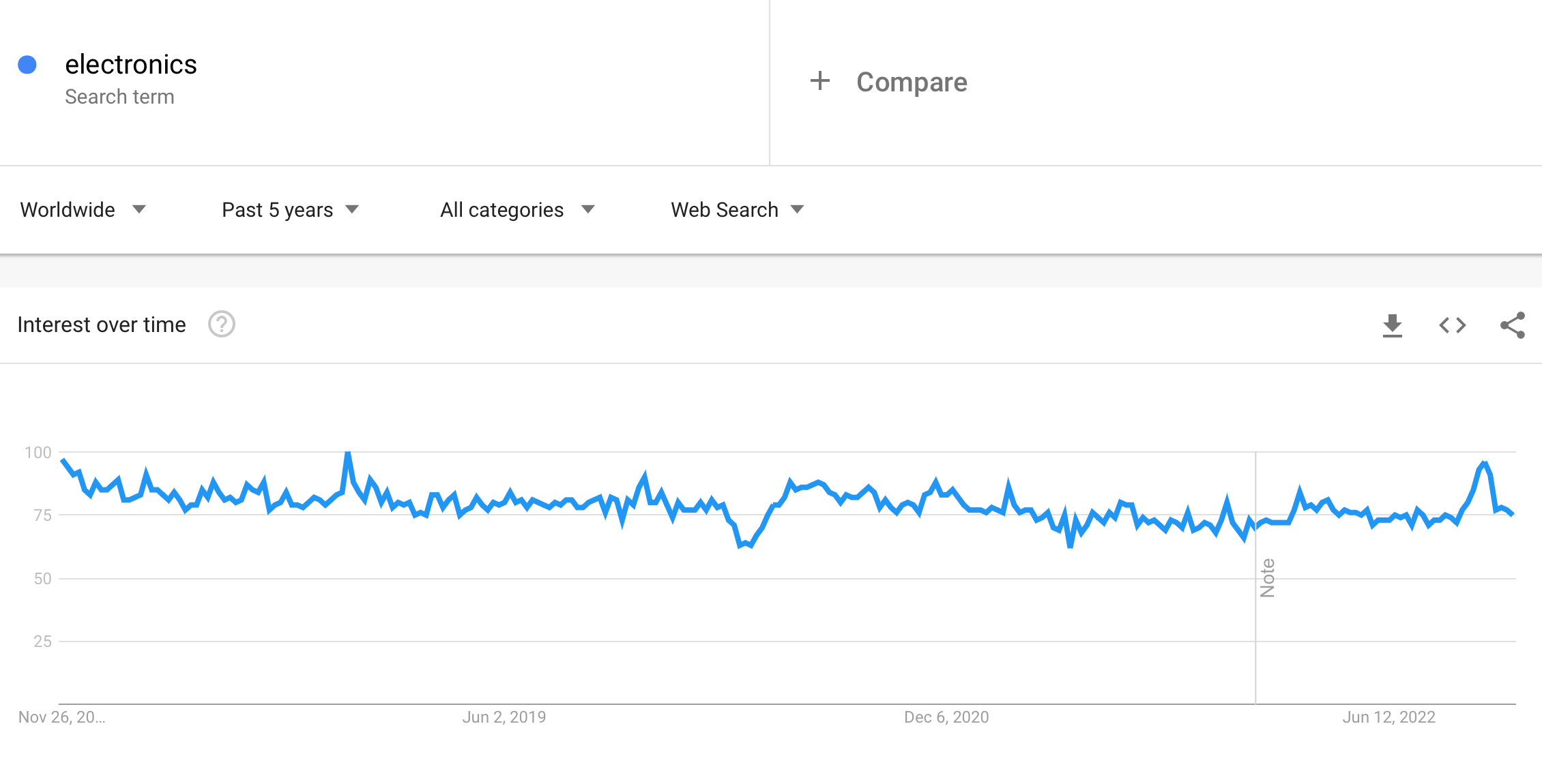 To date, electronics are everywhere. That’s why this is one of the most promising niches that contains lots of evergreen products to sell in your online store. Just take a look at how much people want to buy electronics online.