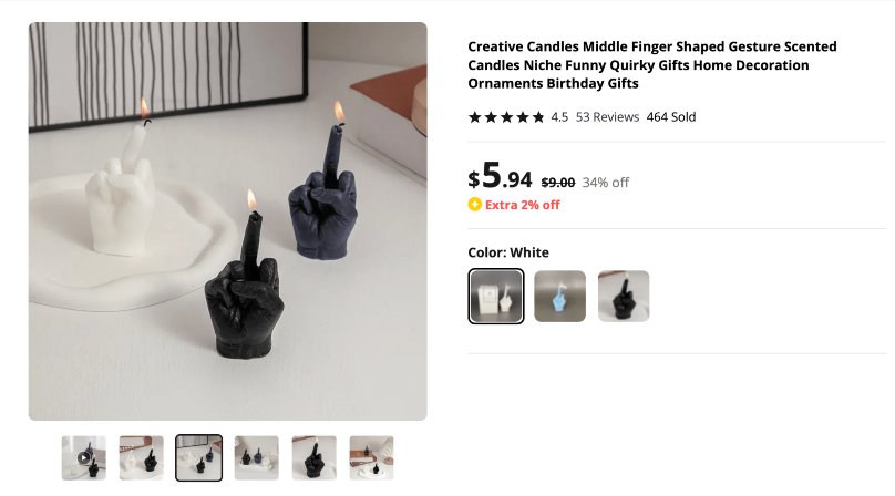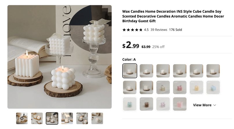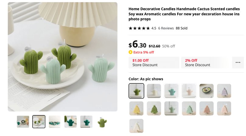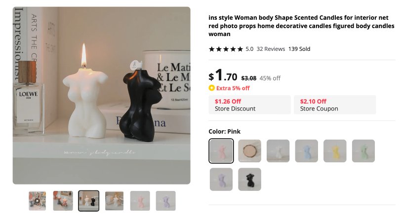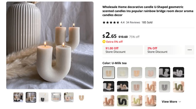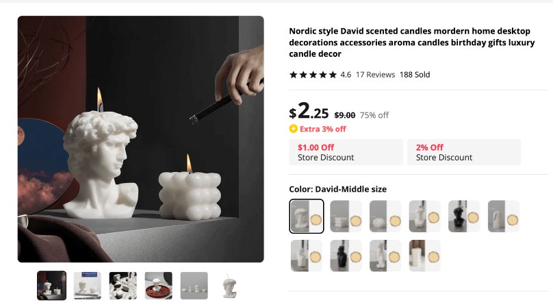 A glimpse at product examples for candle dropshipping