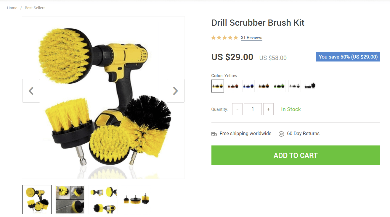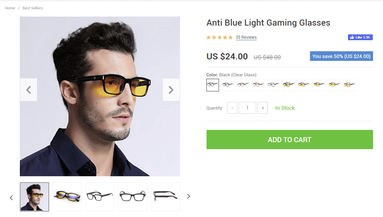 As we can see, everything is in plain sight. There are lots of product images showcasing the product. Additionally, the product page has several purchasing options that are easy to read and comprehend. This makes the purchasing process much easier – a potential buyer can choose any color they like and as many items as they need.