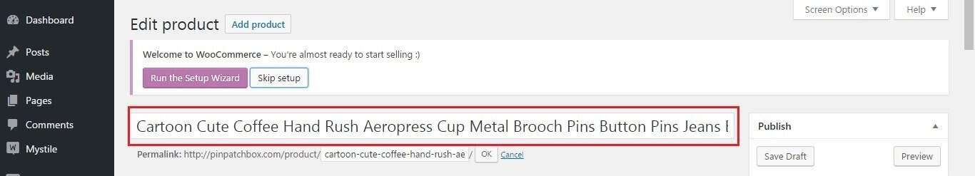 In the previous example, we have changed the product name to a more SEO-friendly one, but the URL is still ugly: