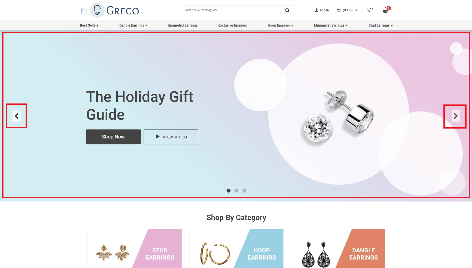 As soon as we go to the main page of your online store, we see a large banner. What is more, you can add several banners, and your visitors will have an opportunity to switch between them using the respective buttons. In the theme settings, you can enable the auto-rotation option.