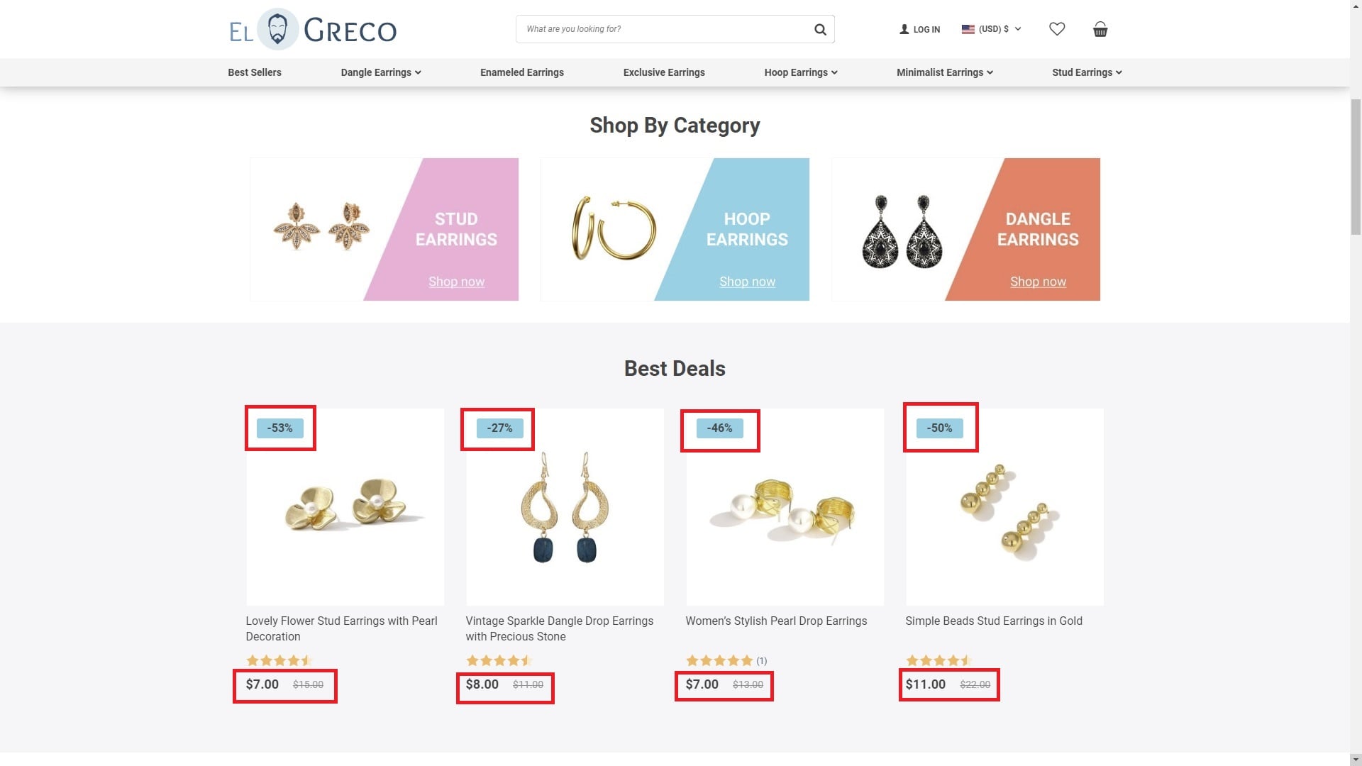 If you scroll the main page down, you may pay attention to the fact that product images already include the discount badges. Moreover, there are both original and discounted prices.