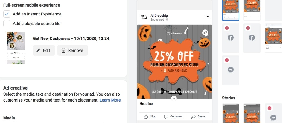 Facebook also lets you turn images into videos. All it does is makes the picture move a little. But even this simple trick makes such ads more visually attractive.
