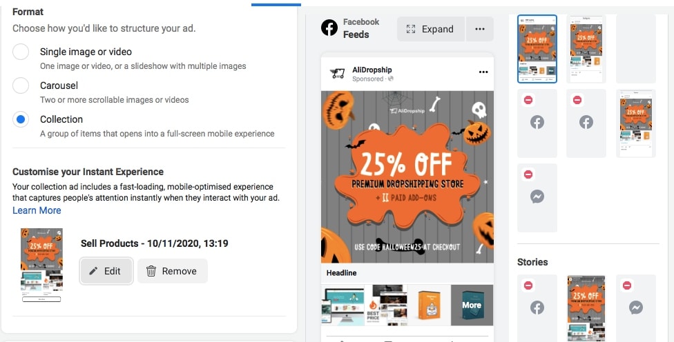 Collection ads are very similar to carousels. Both these Facebook ad types can demonstrate different products instead of just one.