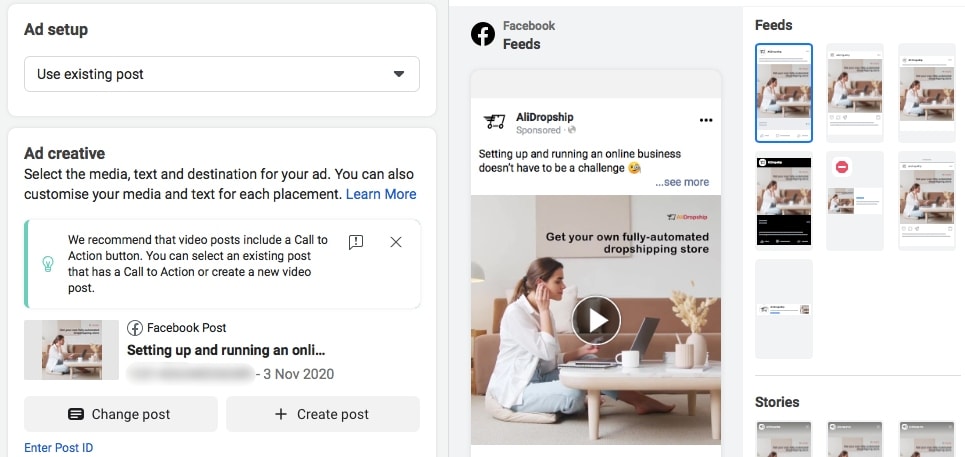 For example, you can publish a video post and then use it in a campaign. In this case, it’ll work almost the same way a standard video ad does. But I said almost.