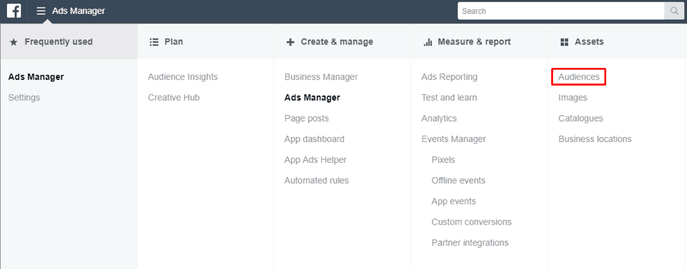After that, go to the “Audiences” toolbox via Facebook Ads Manager main menu.