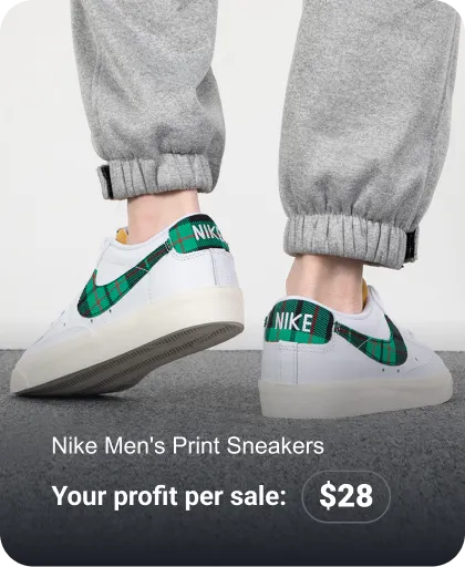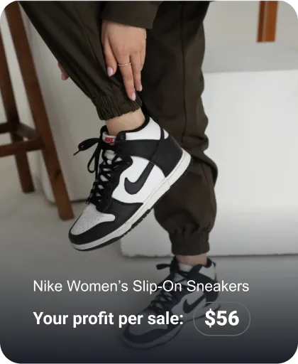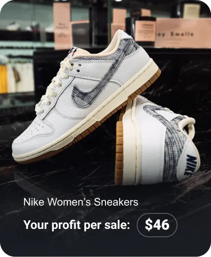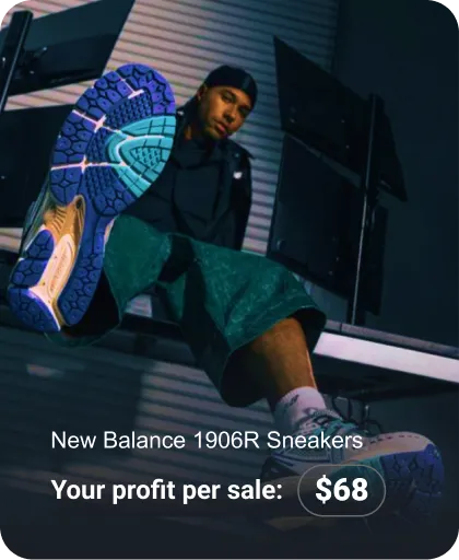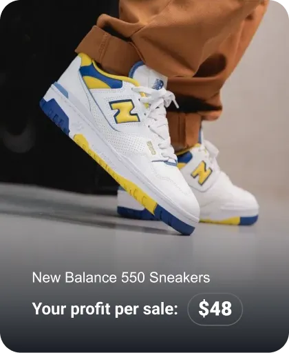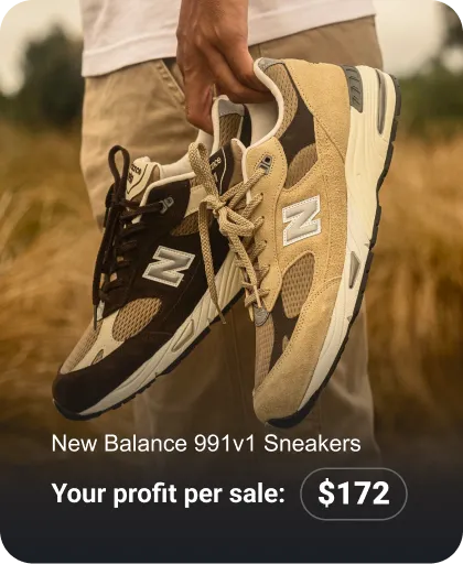 Let's say your customer buys a New Balance Suede Sneakers listed on your store for $228. You then redirect the order to us at a purchase price of only $55.