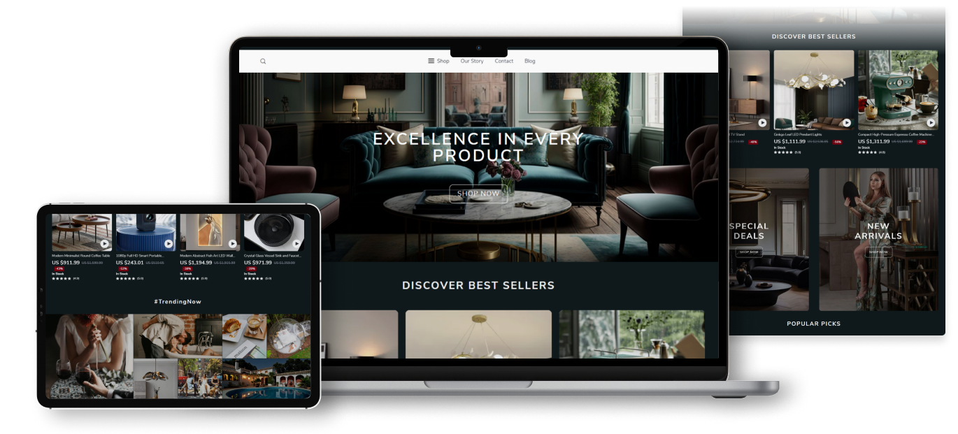 We build a high-class ecommerce site based on your preferences. We set it up completely and add 50+ products so you can start selling right away.