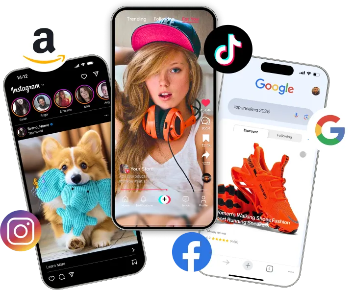 • Your ads on Amazon, Google, Facebook, TikTok, Instagram