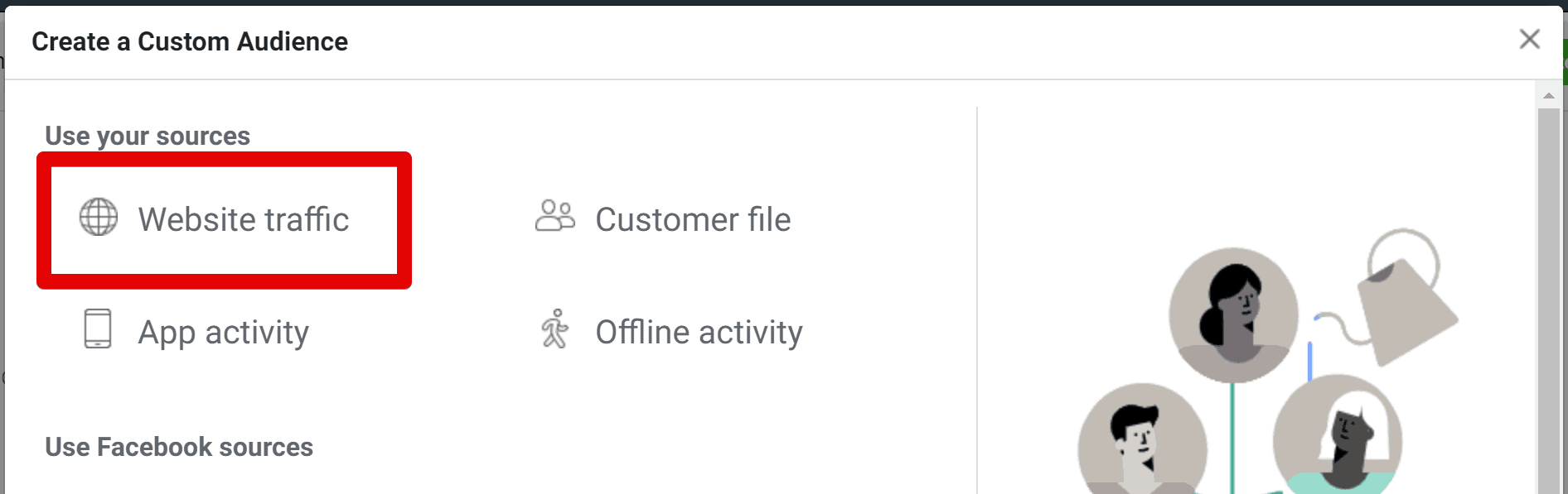 Choose the “Custom audience” option in the “Create Audience” menu.
