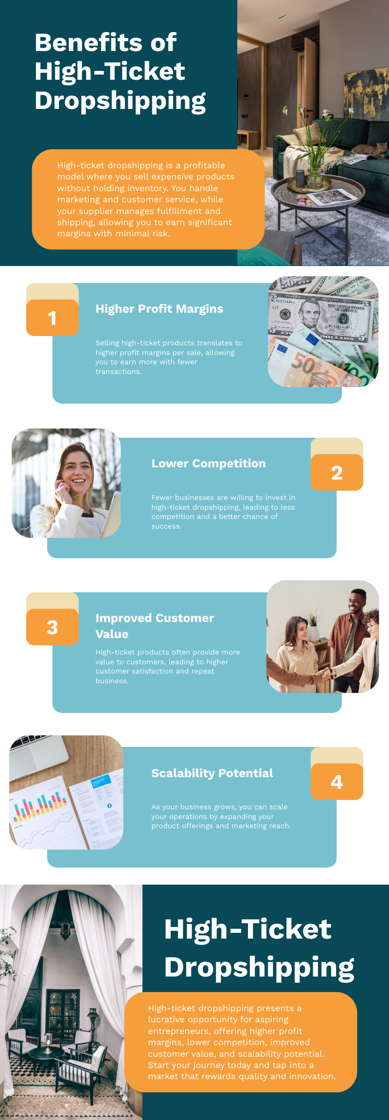 High-ticket dropshipping is a powerful strategy to increase your earnings because it focuses on selling high-value items like luxury furniture or premium electronics. These products can generate significantly higher profits per sale compared to lower-cost items.