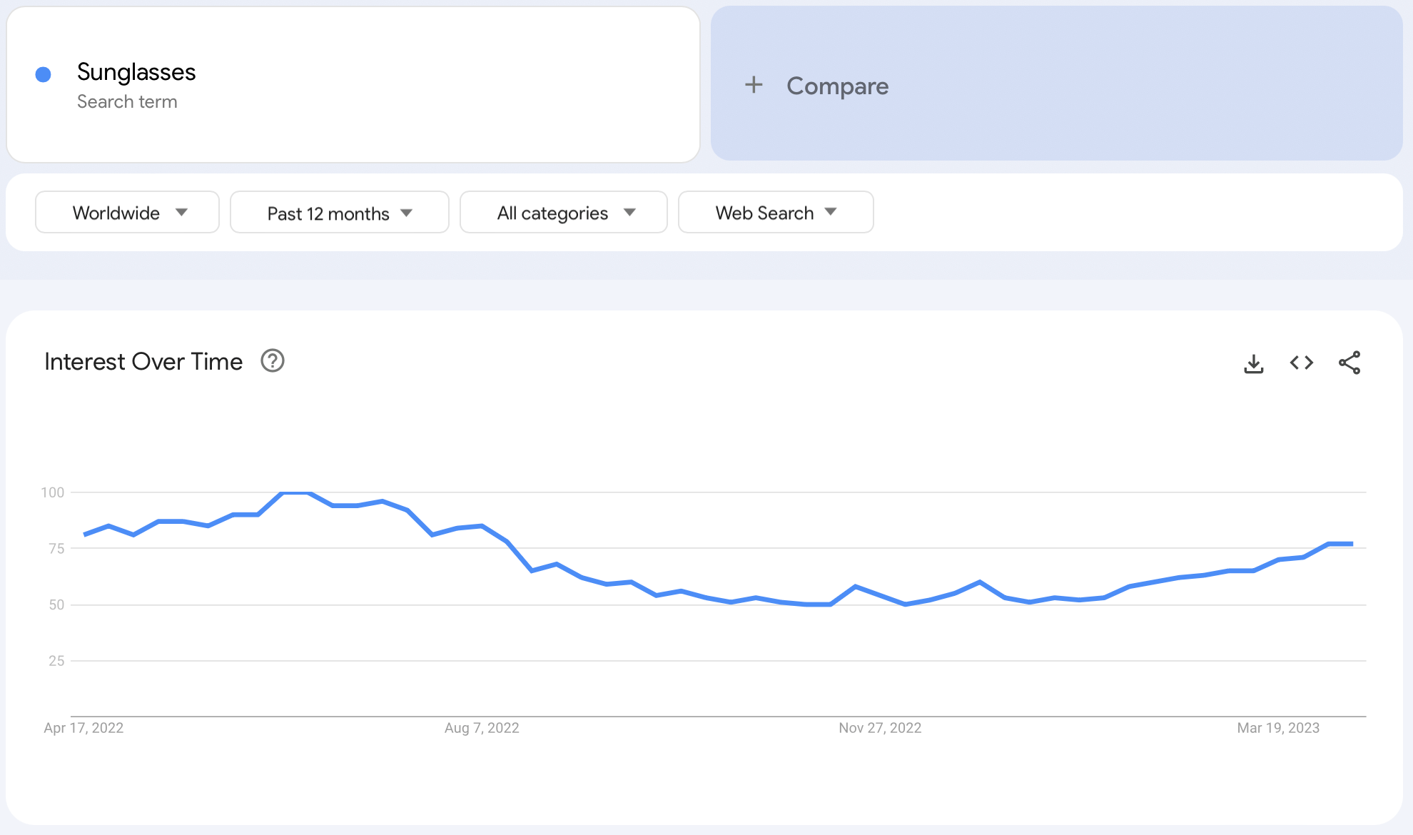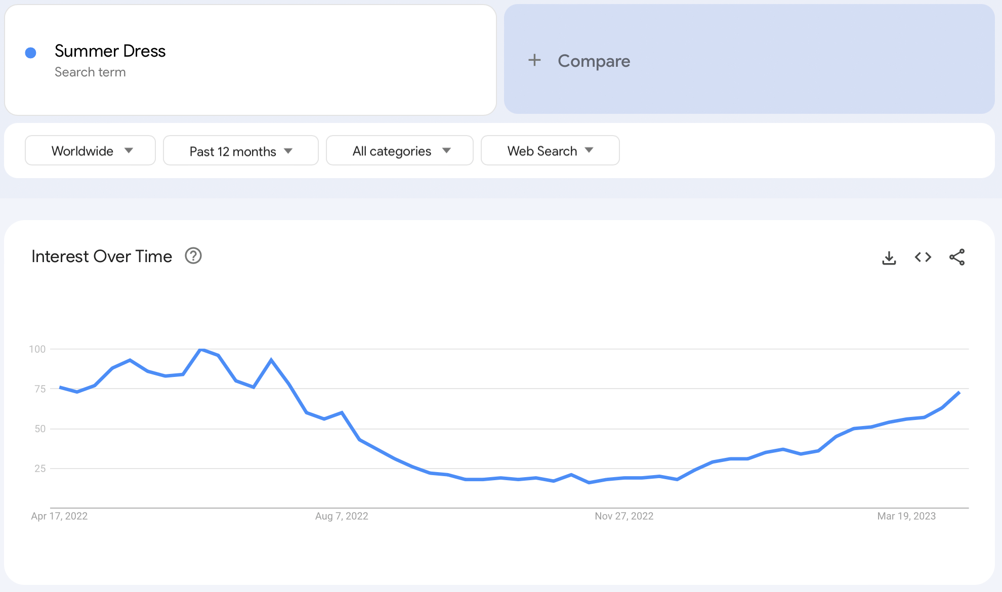 Right, these light tops are well-demanded throughout the year. But there’s a demand peak that occurs at the beginning of summer making it a perfect product to sell in your online store after winter has come to an end.