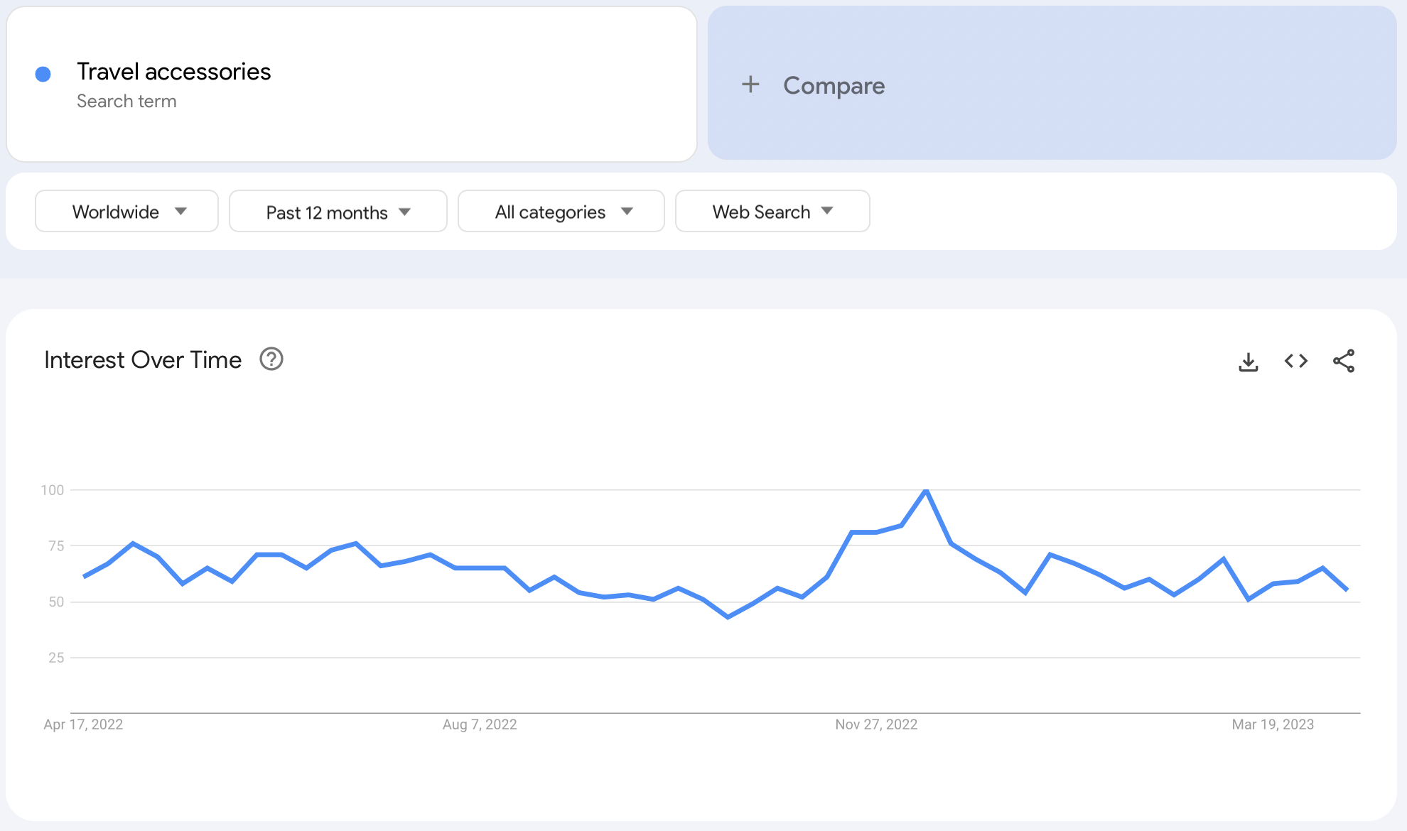 This is a prime example of a seasonal product. The interest in it is extremely high at the beginning of summer. Meantime, it doesn’t draw much attention in fall and winter (and this is logical).