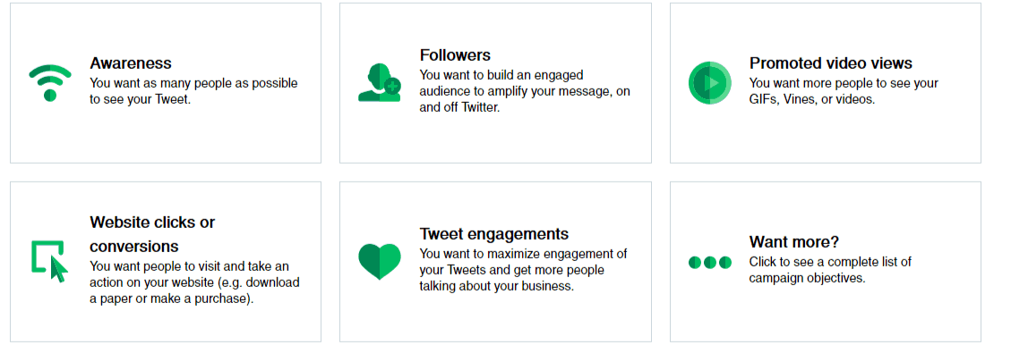 Once you’ve created your account, you need to decide what goals you want to achieve with your Twitter ad campaign.