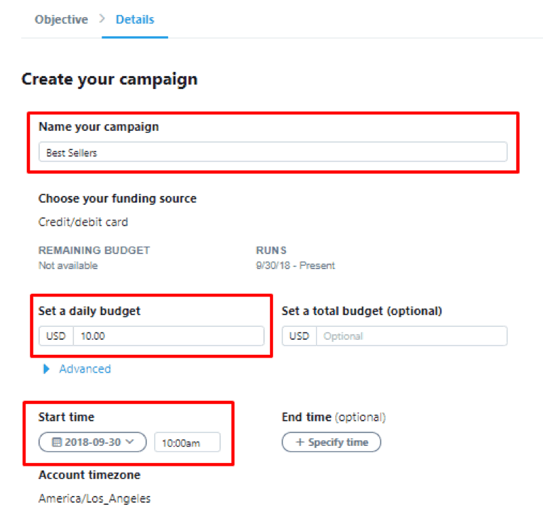 We recommend you to select the second option, even if it doesn’t comply with the recommendations of Twitter. So, you will have more chances not to spend your daily budget in 5 minutes.