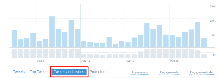 In the opened window, you will see how people interact with your tweets. In order to get more information, click the “Tweets and replies” tab and choose the tweet you want to analyze.