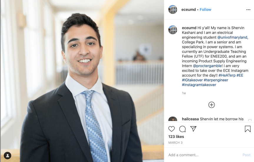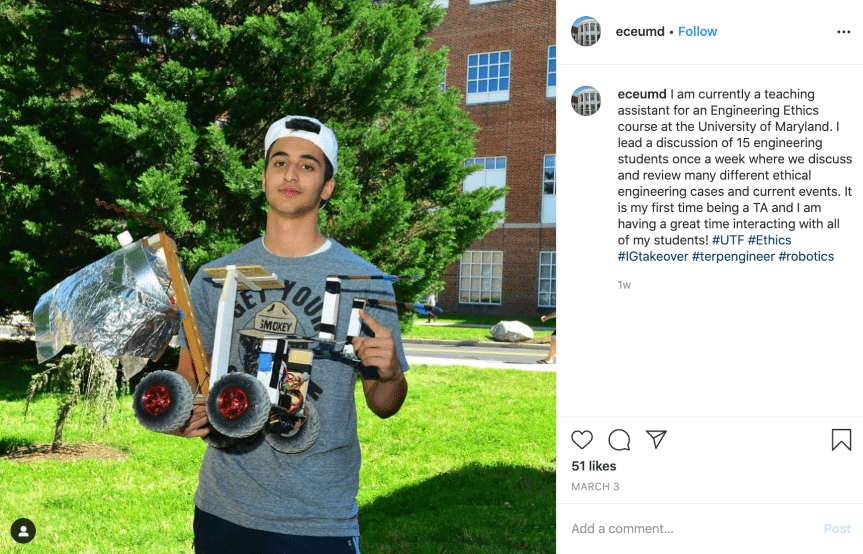 Instagram account for the Electrical and Computer Engineering Department at the University of Maryland.