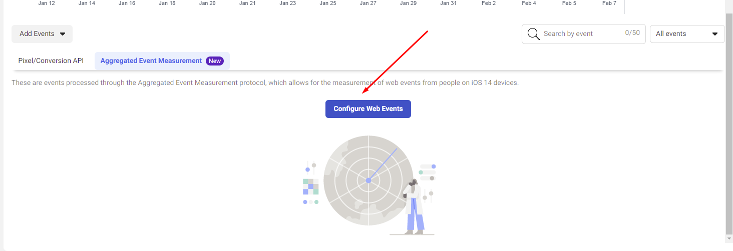 Go to Facebook Events Manager, choose your store’s Pixel there and click “Aggregated Event Measurement”: