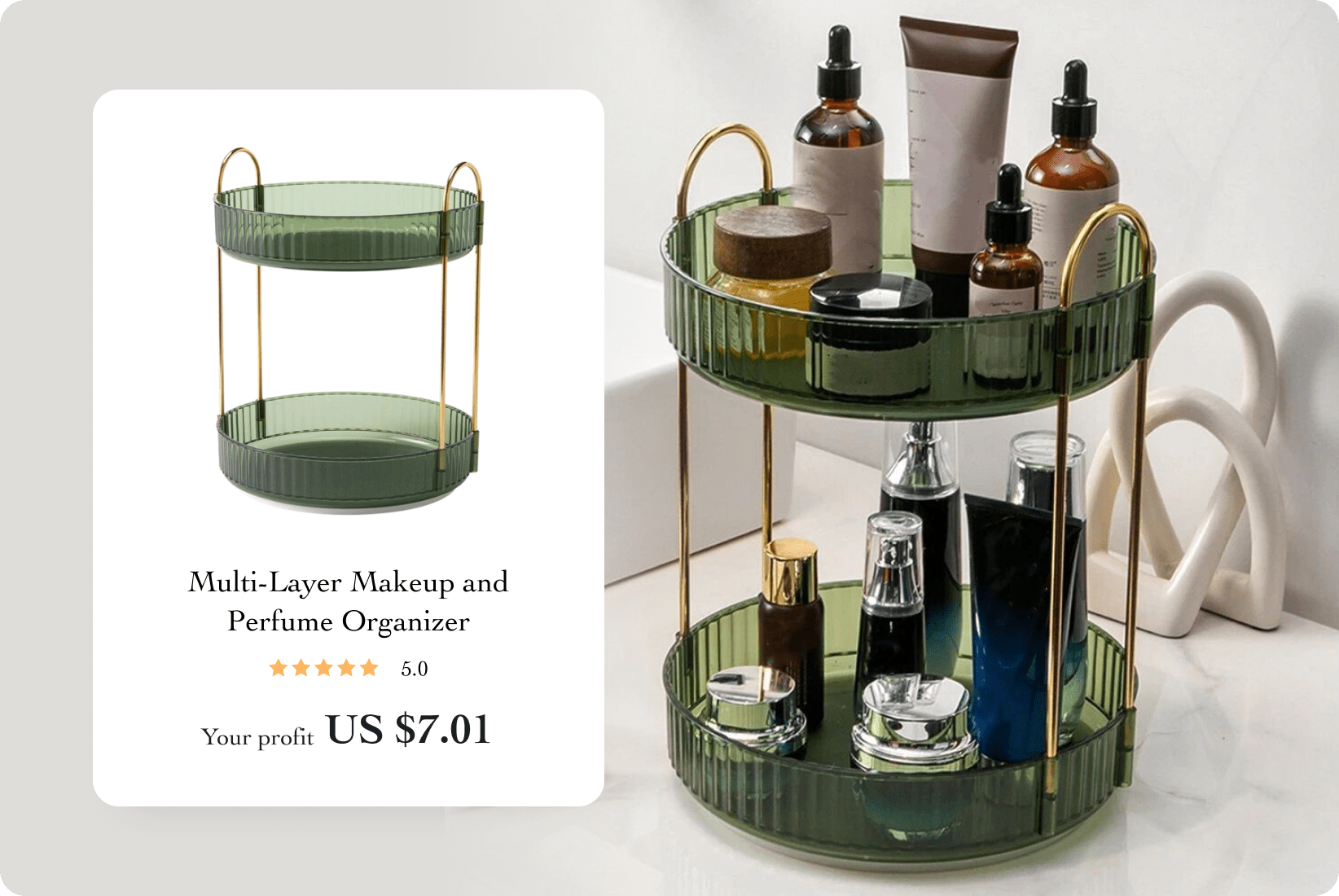 Introducing the 360° rotating multi-layer makeup and perfume organizer — the ultimate blend of style and functionality for your clients. Perfect for dropshippers looking to enhance their beauty product lineup.