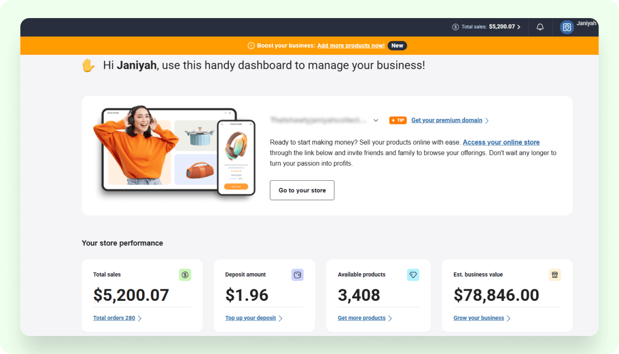 - Pre-built stores: start thinking about expanding your business empire – choose from a wide range of ready-made, ready-to-sell premium stores.