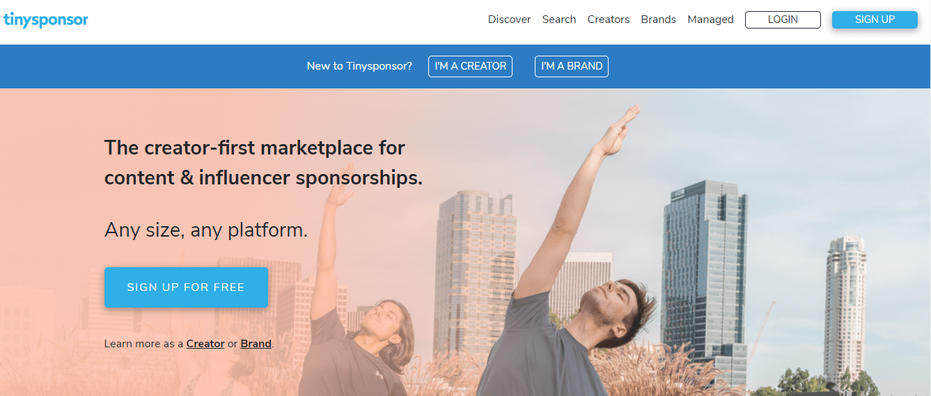 Some of them are free, some are not. Tinysponsor is just one example of a platform that focuses on micro influencers particularly. Most of such tools also allow you to start influencer campaigns. In this case, you simply pay the platform and tell them what kind of promotion you want, and the team will find and contact influencers.