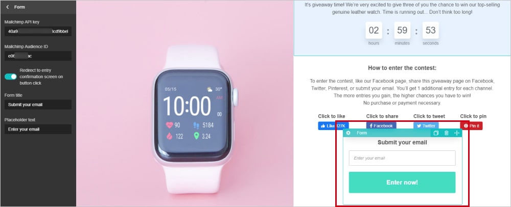 With the brand new Contest template developed for the Landing Pages add-on, you can create giveaways in just a few minutes. Have a look at the demo contest landing page.
