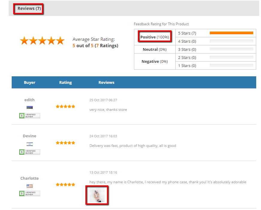 An average rating of your product should be high. At least, higher than 4,5. Yep, that’s obvious, but it is the very first thing a customer looks at before making a final decision to buy a product and we should remember that.