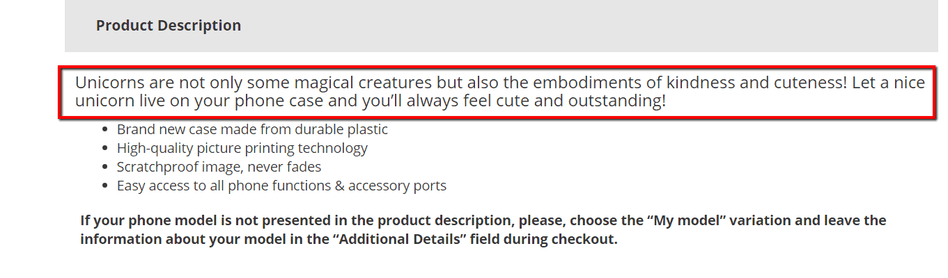 Note: we use different font characteristics – to divide intro, bullet points and other paragraphs in Product Description and make it look well-structured.