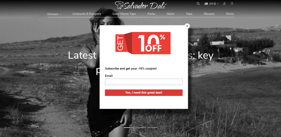 If you’re an owner of a dropshipping store, this is the type of pop-up which might be the most interesting for you. It doesn’t depend on any user activities and gets shown to every visitor of your website.