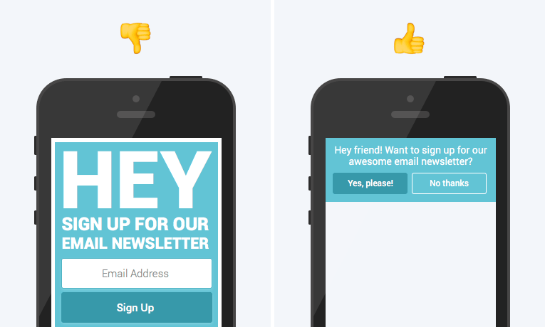 Remember: mobile users are extremely demanding when it comes to the mobile experience. Before launching any new pop-ups on your website, take some time to check your mobile version and see if anything could be improved. Do not display pop-ups that cover the main content or hamper the user experience.