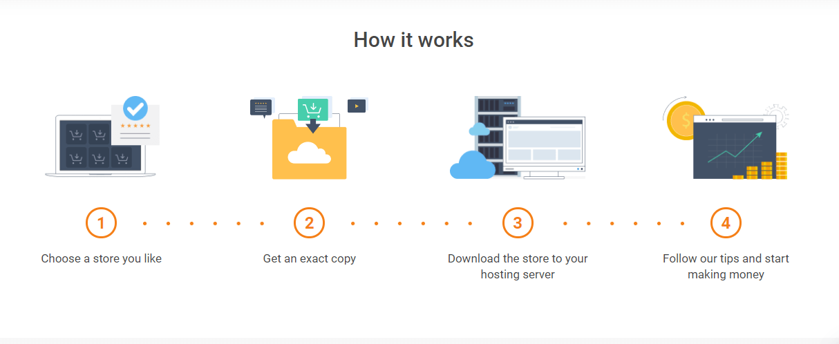 With ready stores of this kind, you get a copy of a dropshipping website that is already making money with all its materials. Thus, there’s no need to experiment trying to figure out the best options on your own.