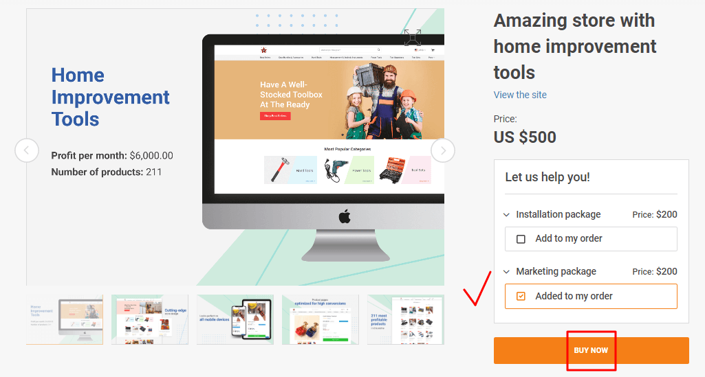 First of all, you can buy a pure copy of the original website with no extra packages. To do that, simply leave the package offers unchecked and press the BUY NOW button. In this case, you will have to install the files by yourself and use your own domain name and hosting.