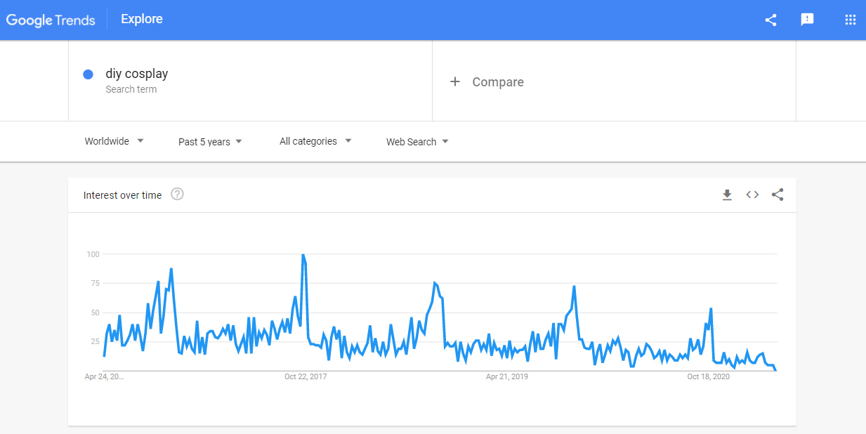 People are less and less interested in ready-made cosplay costumes. Instead, they show a steady interest pattern to crafting their outfits themselves!