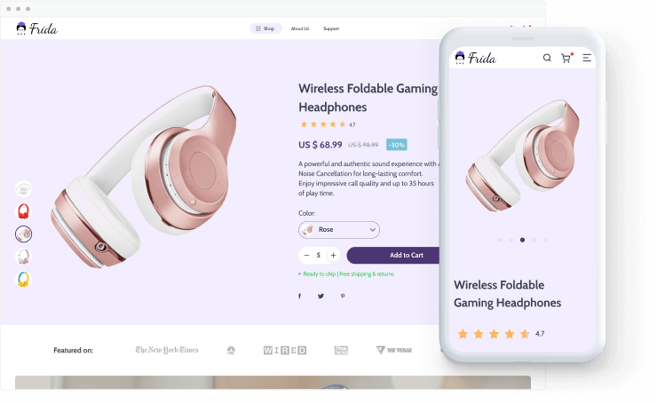 As you can see, Frida suits those entrepreneurs who don’t want to be overstretched but focus on a small number of hype products only. With Frida, you are able to provide a customer with full information about your best sellers and leave them no choice but to place an order in your store.