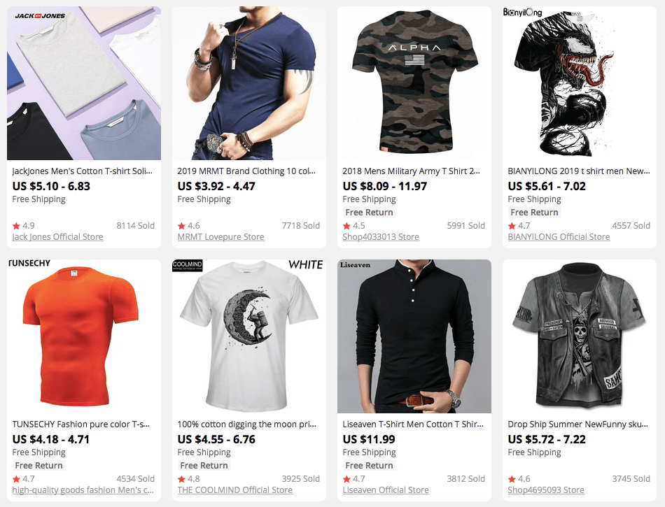 AliExpress t-shirts are sold in thousands, which makes them a truly great type of product to add to your dropshipping store.