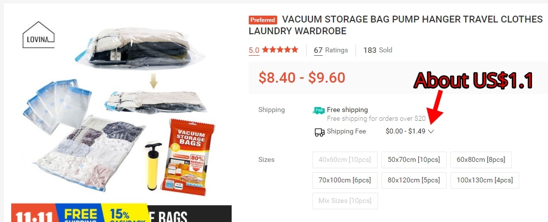 Shipping cost isn’t high. For most products, customers have to pay not more than US$1. Many sellers offer free delivery in exchange for larger orders.
