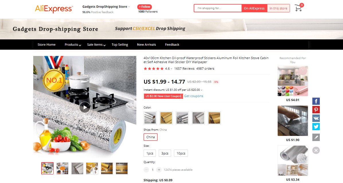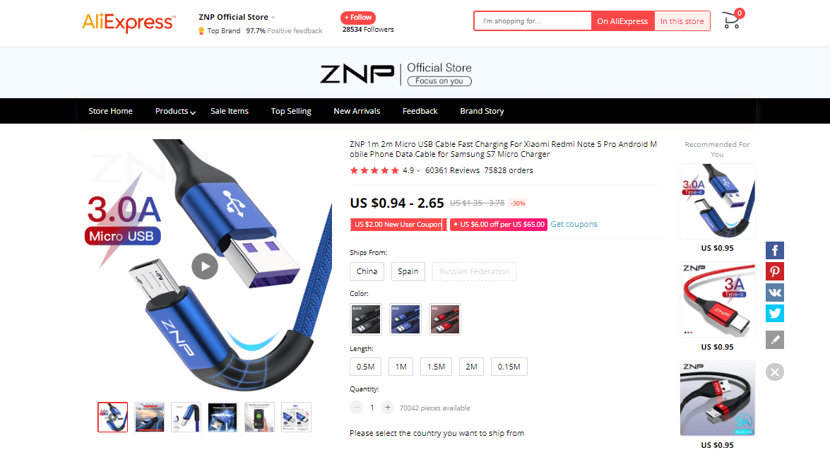 AliExpress find: price – $0.94-2.65, rating – 4.9*, number of orders – 75828